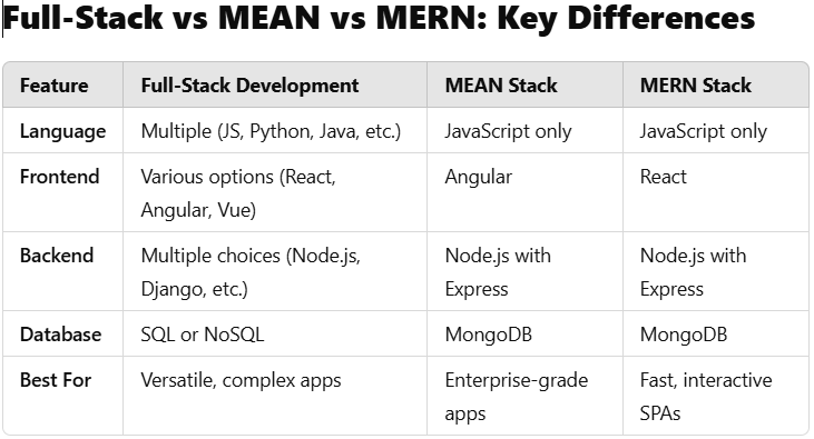 Each tech stack has its strengths and ideal use cases. Understanding your project requirements, budget, and scalability needs will help you make the right choice. Whether you choose Full-Stack, MEAN, or MERN, ensuring you have a talented development team is crucial for success.
